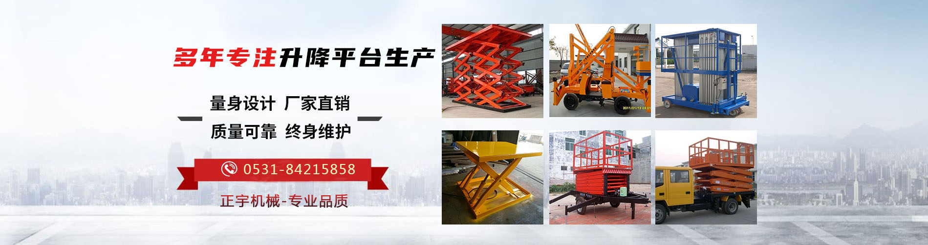 濟(jì)南正宇升降機(jī)械有限公司是一家集設(shè)計(jì)、研發(fā)、生產(chǎn)和銷售于一體的制造型企業(yè),生產(chǎn)液壓升降機(jī)械和高空作業(yè)平臺(tái),公司處于素有泉城美稱的山東省濟(jì)南市,坐落于濟(jì)北開發(fā)區(qū)。優(yōu)越的地理位置和便利的交通給公司的發(fā)展帶來了充分的條件。正宇液壓技術(shù)力量厚,工藝流程先進(jìn)合理,檢測(cè)手段齊全。目前主要產(chǎn)品有:高空作業(yè)平臺(tái)、登車橋、固定升降機(jī)、移動(dòng)升降機(jī)以及鋁合金升降機(jī)等等。公司產(chǎn)品具有設(shè)計(jì)新穎、結(jié)構(gòu)合理、升降平穩(wěn)、載重安全、操作簡(jiǎn)單、維護(hù)方便等優(yōu)點(diǎn)。產(chǎn)品廣泛應(yīng)用于各個(gè)行業(yè),如工礦企業(yè)、生產(chǎn)流水線、鐵路、機(jī)場(chǎng)、車站碼頭、貨物裝卸升舉、廠房工地、倉儲(chǔ)物流、高空設(shè)備安裝等場(chǎng)合。公司以誠(chéng)信、創(chuàng)新、穩(wěn)健為宗旨,以品質(zhì)、完善服務(wù)的理念,迎接市場(chǎng)的挑戰(zhàn)。期待您的咨詢!